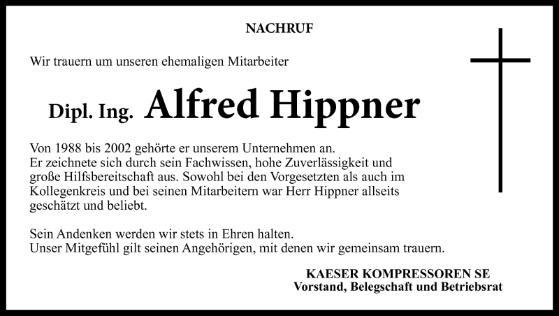 Hier finden Sie alle Traueranzeigen aus der Zeitung, die bisher für Alfred Hippner erschienen sind. Weitere Traueranzeigen, die in der Zeitung erscheinen, werden hier ebenfalls aufgelistet
