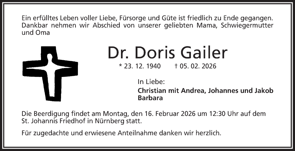 Hier finden Sie alle Traueranzeigen aus der Zeitung, die bisher für Dr.Doris Gailer erschienen sind. Weitere Traueranzeigen, die in der Zeitung erscheinen, werden hier ebenfalls aufgelistet