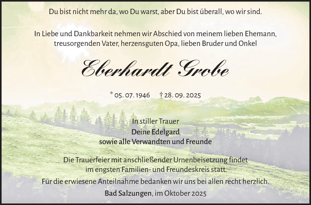 Hier finden Sie alle Traueranzeigen aus der Zeitung, die bisher für Eberhardt Grobe erschienen sind. Weitere Traueranzeigen, die in der Zeitung erscheinen, werden hier ebenfalls aufgelistet
