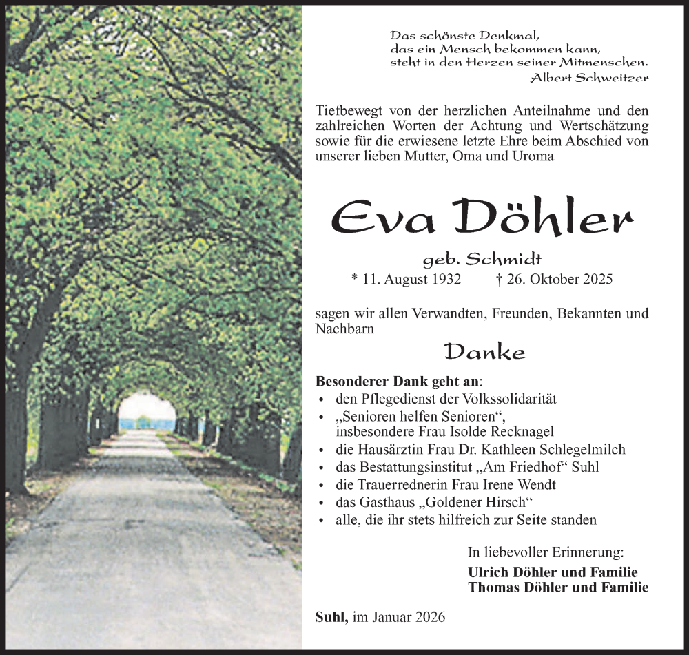 Hier finden Sie alle Traueranzeigen aus der Zeitung, die bisher für Eva Döhler erschienen sind. Weitere Traueranzeigen, die in der Zeitung erscheinen, werden hier ebenfalls aufgelistet