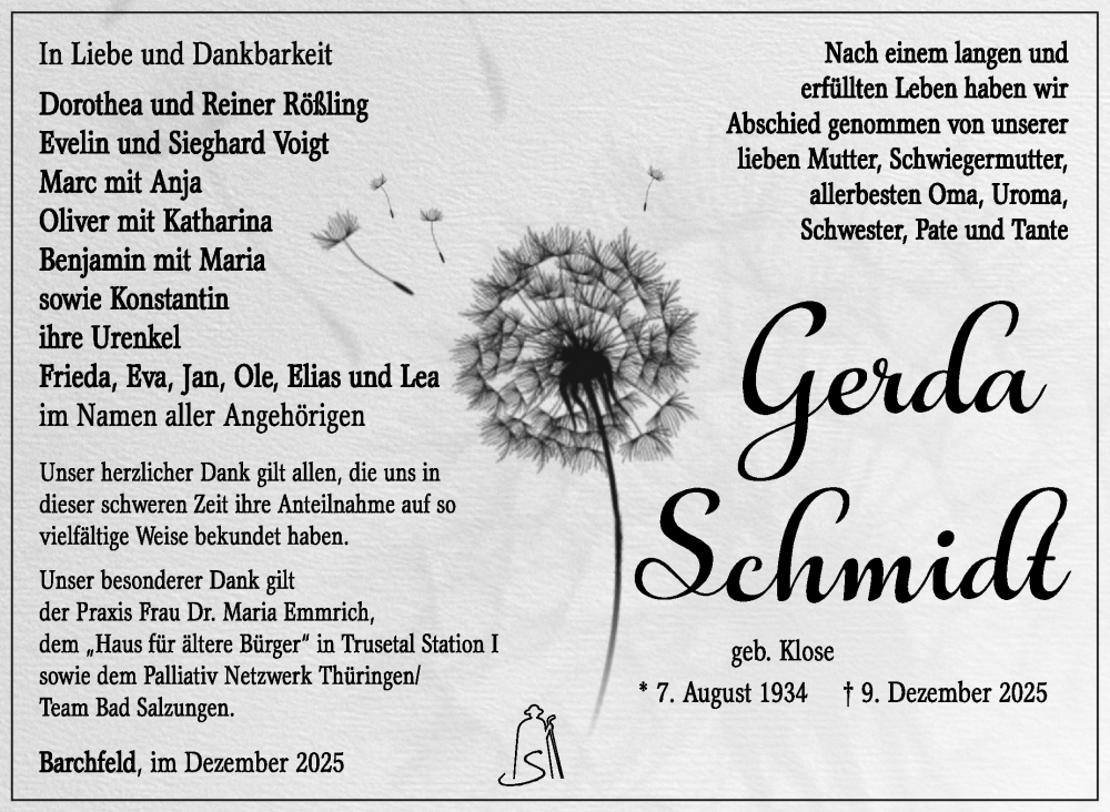 Hier finden Sie alle Traueranzeigen aus der Zeitung, die bisher für Gerda Schmidt erschienen sind. Weitere Traueranzeigen, die in der Zeitung erscheinen, werden hier ebenfalls aufgelistet