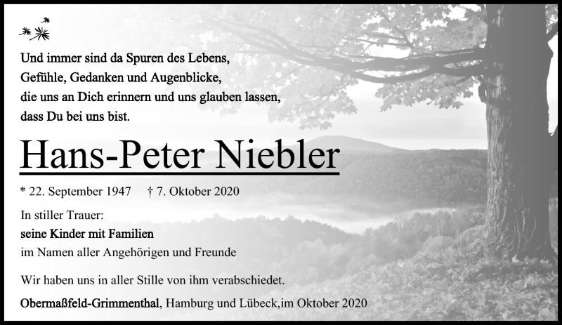 Hier finden Sie alle Traueranzeigen aus der Zeitung, die bisher für Hans-peter Niebler erschienen sind. Weitere Traueranzeigen, die in der Zeitung erscheinen, werden hier ebenfalls aufgelistet