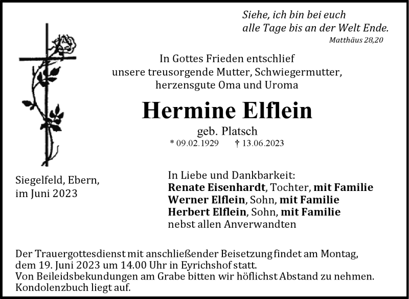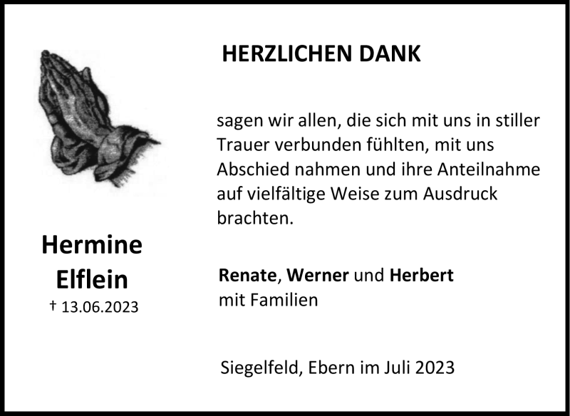Hier finden Sie alle Traueranzeigen aus der Zeitung, die bisher für Hermine Elflein erschienen sind. Weitere Traueranzeigen, die in der Zeitung erscheinen, werden hier ebenfalls aufgelistet