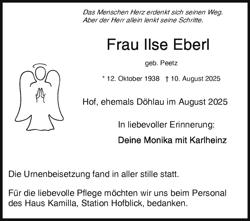 Hier finden Sie alle Traueranzeigen aus der Zeitung, die bisher für Ilse Eberl erschienen sind. Weitere Traueranzeigen, die in der Zeitung erscheinen, werden hier ebenfalls aufgelistet