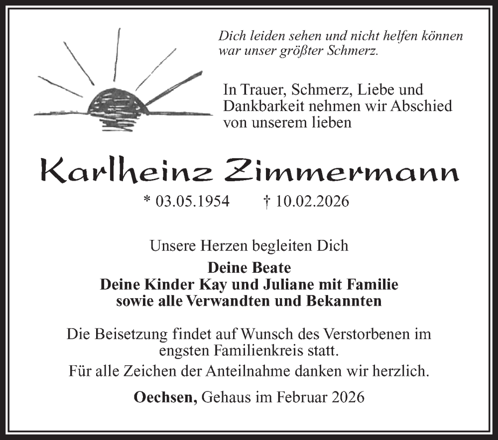 Hier finden Sie alle Traueranzeigen aus der Zeitung, die bisher für Karlheinz Zimmermann erschienen sind. Weitere Traueranzeigen, die in der Zeitung erscheinen, werden hier ebenfalls aufgelistet