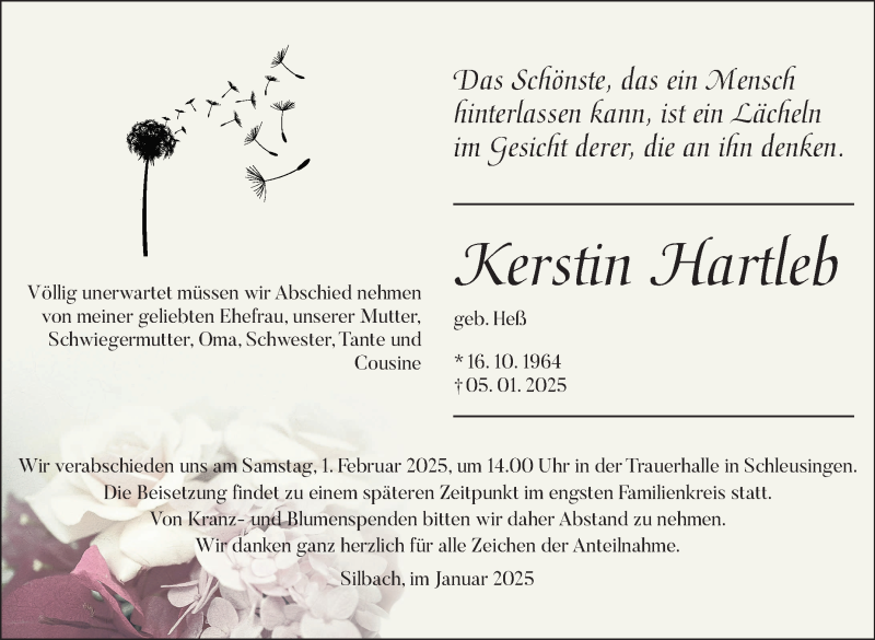 Hier finden Sie alle Traueranzeigen aus der Zeitung, die bisher für Kerstin Hartleb erschienen sind. Weitere Traueranzeigen, die in der Zeitung erscheinen, werden hier ebenfalls aufgelistet