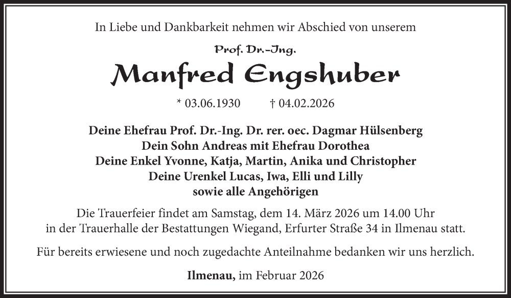 Hier finden Sie alle Traueranzeigen aus der Zeitung, die bisher für Manfred Engshuber erschienen sind. Weitere Traueranzeigen, die in der Zeitung erscheinen, werden hier ebenfalls aufgelistet