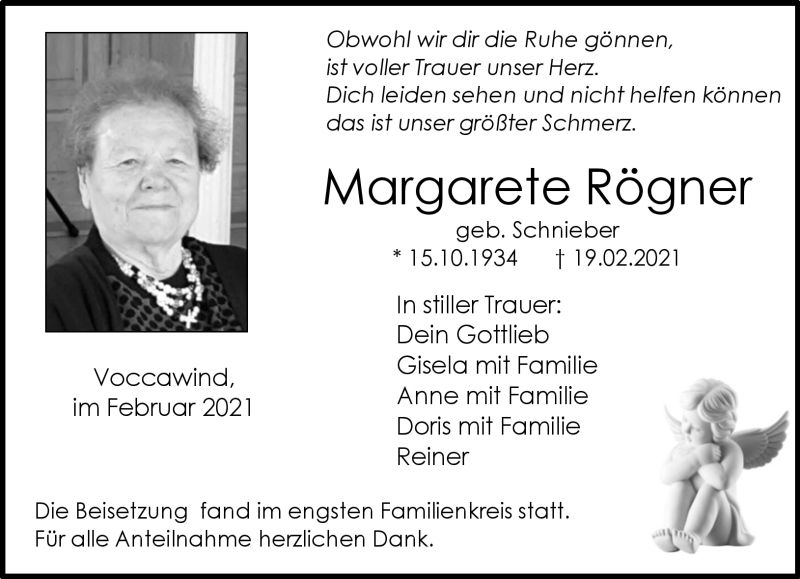 Hier finden Sie alle Traueranzeigen aus der Zeitung, die bisher für Margarete Rögner erschienen sind. Weitere Traueranzeigen, die in der Zeitung erscheinen, werden hier ebenfalls aufgelistet