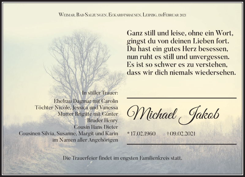 Hier finden Sie alle Traueranzeigen aus der Zeitung, die bisher für Michael Jakob erschienen sind. Weitere Traueranzeigen, die in der Zeitung erscheinen, werden hier ebenfalls aufgelistet