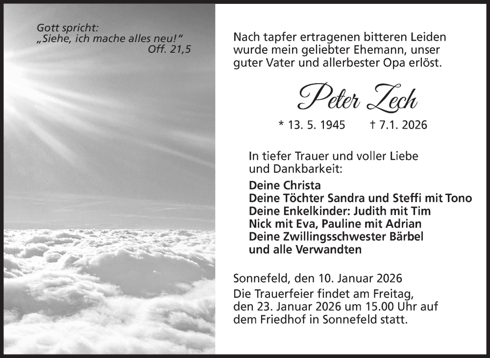 Hier finden Sie alle Traueranzeigen aus der Zeitung, die bisher für Peter Zech erschienen sind. Weitere Traueranzeigen, die in der Zeitung erscheinen, werden hier ebenfalls aufgelistet