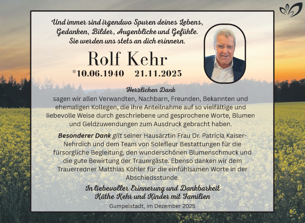 Hier finden Sie alle Traueranzeigen aus der Zeitung, die bisher für Rolf Kehr erschienen sind. Weitere Traueranzeigen, die in der Zeitung erscheinen, werden hier ebenfalls aufgelistet