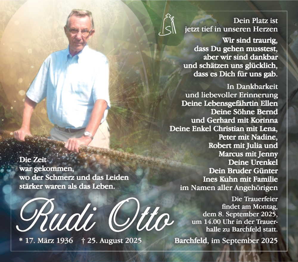 Hier finden Sie alle Traueranzeigen aus der Zeitung, die bisher für Rudi Otto erschienen sind. Weitere Traueranzeigen, die in der Zeitung erscheinen, werden hier ebenfalls aufgelistet