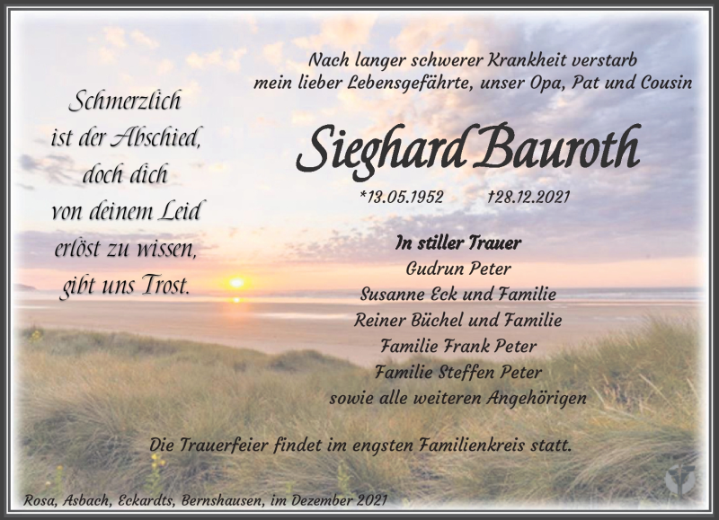 Hier finden Sie alle Traueranzeigen aus der Zeitung, die bisher für Sieghard Bauroth erschienen sind. Weitere Traueranzeigen, die in der Zeitung erscheinen, werden hier ebenfalls aufgelistet