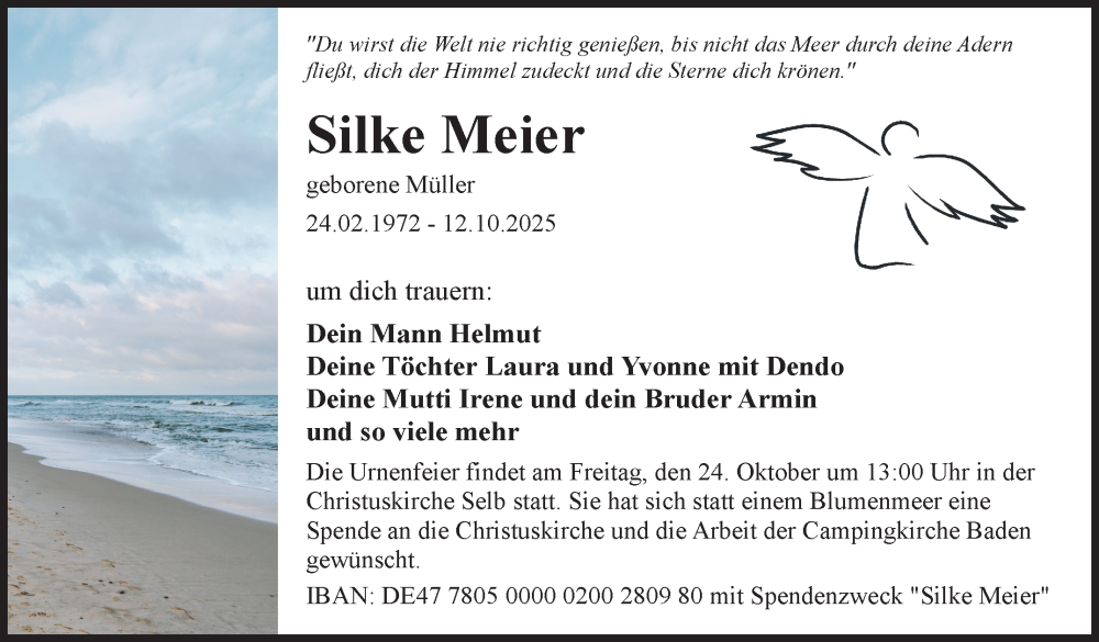 Hier finden Sie alle Traueranzeigen aus der Zeitung, die bisher für Silke Meier erschienen sind. Weitere Traueranzeigen, die in der Zeitung erscheinen, werden hier ebenfalls aufgelistet