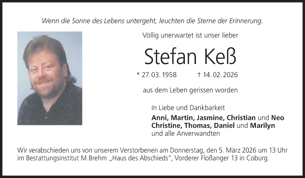Hier finden Sie alle Traueranzeigen aus der Zeitung, die bisher für Stefan Keß erschienen sind. Weitere Traueranzeigen, die in der Zeitung erscheinen, werden hier ebenfalls aufgelistet