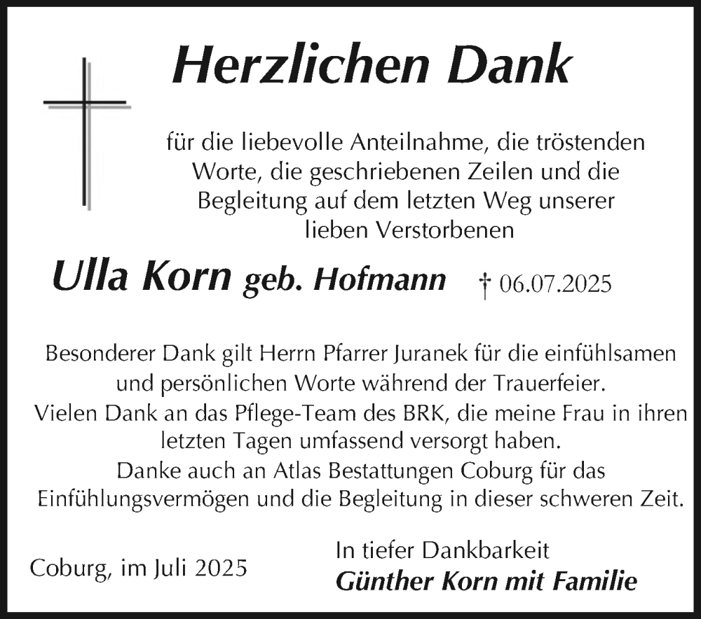 Hier finden Sie alle Traueranzeigen aus der Zeitung, die bisher für Ulla Korn erschienen sind. Weitere Traueranzeigen, die in der Zeitung erscheinen, werden hier ebenfalls aufgelistet